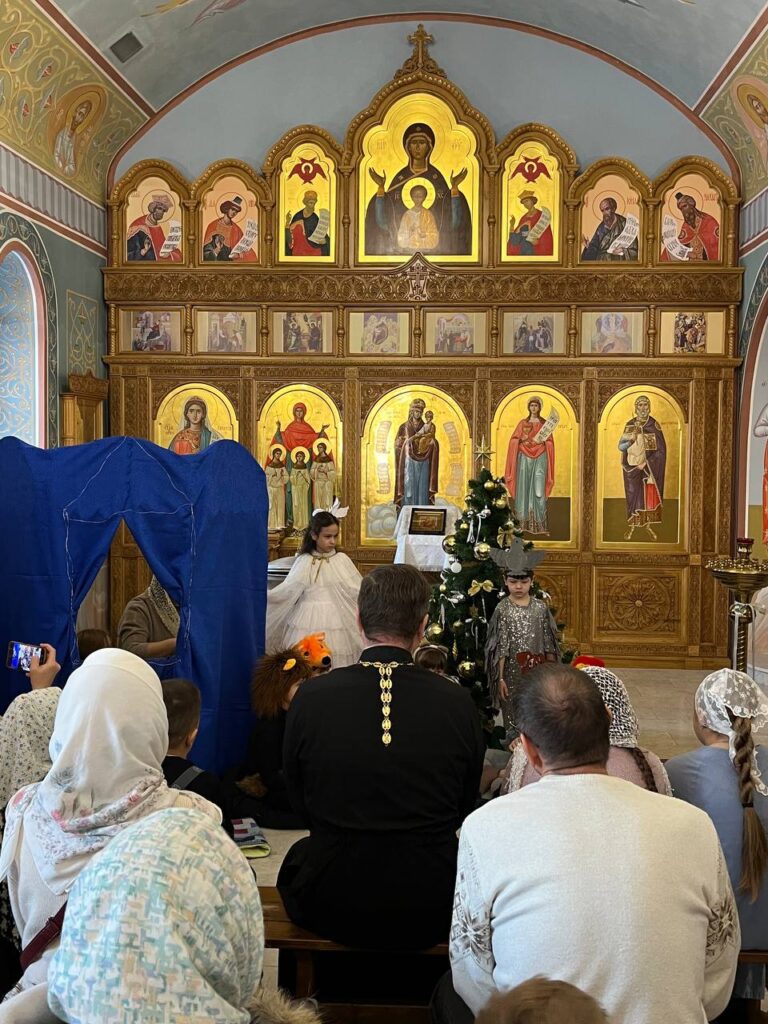 Затем в Храме состоялся спектакль «Звери у костра в рождественскую ночь», который подготовили воспитанники воскресной школы Храма. Ребята читали стихи. А ученица Анна Тараева сыграла на флейте, а затем с мамой Марией они спели старинную колядку. Спектакль и выступления с удовольствием посмотрели прихожане Храма и с благодарностью похлопали юным артистам. Настоятель Храма, отец Константин, выразил слова благодарности ученикам и преподавателям воскресной школы за старания и подготовку и подарил каждому сладкий подарок.